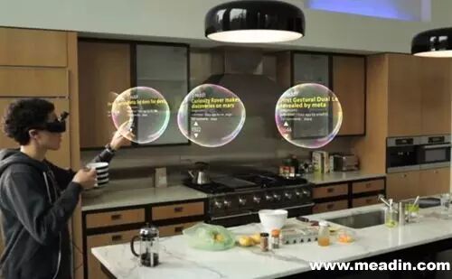 现实中,Meta、微软等厂商,已经开始朝着全息增强现实方向发力,推出了相关设备。虽然还未上市,但从演示中可以看到,它们的使用场景大多是 家居、办公室环境,通过佩戴类似眼镜的设备,人们可以直接在现实环境中看到半透明的可控UI,实现各种娱乐、办公操作。当然,全息技术目前的局限性是必须 依赖设备,而非电影中直接投射于环境中,但显然,未来发展方向与《她》所呈现的是一致的。