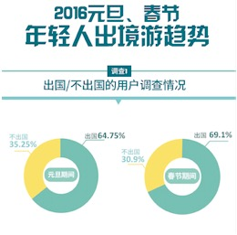 通过此次调查可看出:元旦、春节出国旅游成了大多数年轻人的选择;东南亚国家稳占元旦小长假最受欢迎的目的地;澳大利亚等长线游则成为春节出境新选择;结伴同游对象上,选择和闺蜜、基友、恋人出行的占多数。