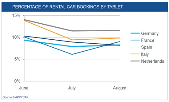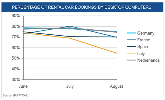 最近由欧洲汽车租赁比较网站HappyCar共享的一些有趣数据,说明了预订逐渐转向移动端。